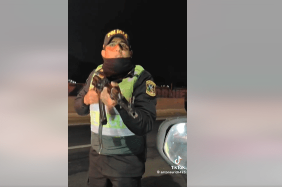 Un conductor – no identificado – grabó a un policía de carretera apuntándolo con su arma de reglamento cuando estaba siendo intervenido en el kilómetro 90 de la Panamericana Norte, en el distrito de Chancay, en la provincia de Huaral.