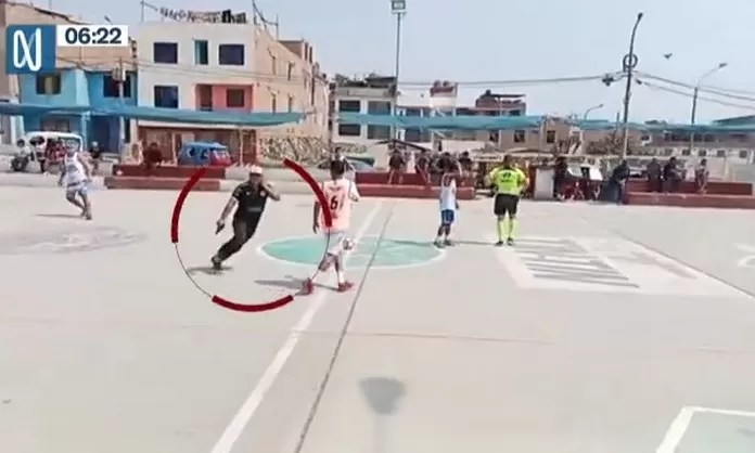 El hecho ocurrió cerca de la casa de la víctima, en la zona de Mariscal Cáceres, donde un asistente que graba el encuentro deportivo captó el momento donde un hombre vestido de negro entró a la cancha.