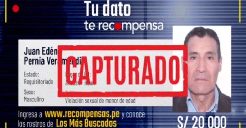 Pernia Veramendi estaba incluido en la lista de los más buscados del Mininter, que ofrecía un beneficio económico de S/20,000 a cambio de información relevante que contribuya con su ubicación y captura.