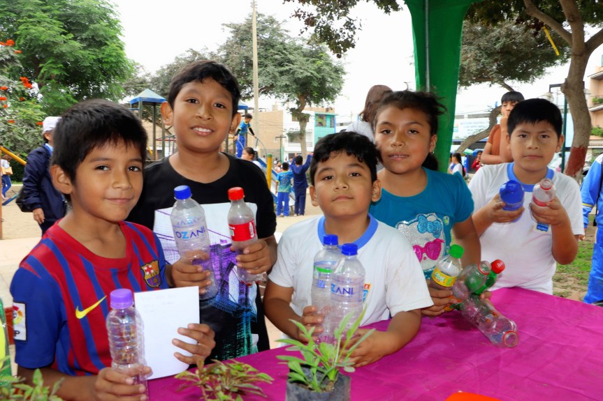 Durante el evento, los estudiantes de las instituciones educativas «San Francisco de Asis», «21010-Clara Nichos Mansilla» y ciudadanos tuvieron la oportunidad de intercambiar materiales reciclables como envases de plástico, botellas, cuadernos, hojas bond, cartón y chatarrería por artículos de limpieza, plantas, semillas, útiles escolares y productos de plástico reciclado.
