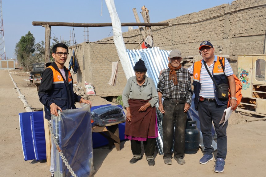 La ayuda humanitaria, que fue entregada al hijo de los adultos mayores, incluyó enseres esenciales como utensilios de cocina, mantas, 1 carpa, 2 colchonetas, 2 camas plegables y calaminas.