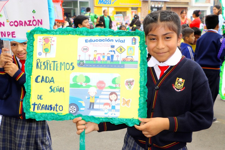 Con la participación de los alumnos y padres de familia de los colegios 21009 «Luis Felipe Subauste del Río», IEI 87 «Emilia Barcia Boniffatti», 20402 «Virgen de Fátima» y 20826 «San Juan Bautista», se llevó a cabo esta mañana el pasacalle de concientización por el inicio de la «Semana de la Educación Vial».