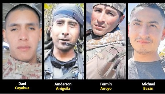 El teniente Michael Bazán Peche (29), los suboficiales Amderson Arrigoila Huanaco (39), Dani Cayahua Condori (28) y el sargento Fermín Arroyo Guzmán (26) perdieron la vida en un ataque sorpresivo. Fuentes del Comando Conjunto refieren que se encuentran malheridos el soldado David Fano Buitrón y un informante apodado ‘Chili’. Otros dos soldados: Martín Mamani y Teodoro Morote, si bien fueron heridos, ya están fuera de peligro.