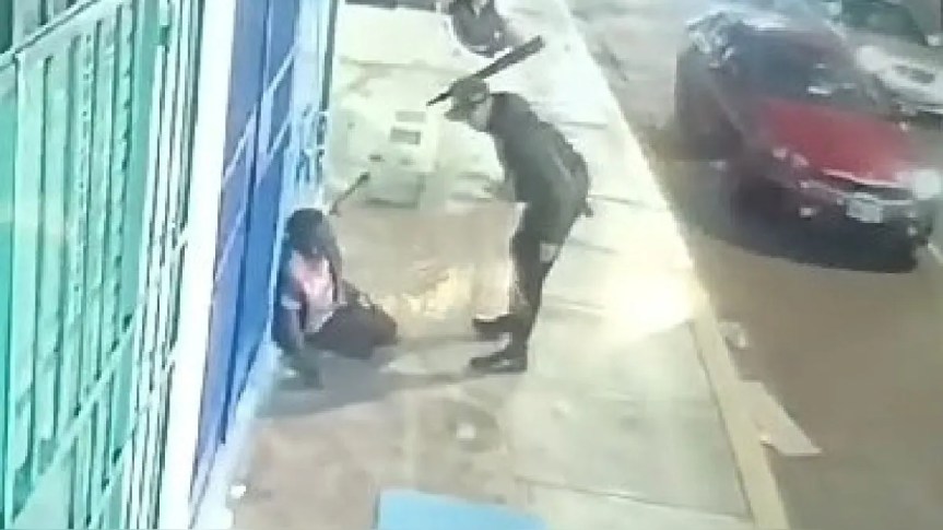 Las cámaras de seguridad captaron el preciso momento en que Arguedas Jiménez acorrala y golpea en más de una ocasión a la agraviada, que cayó al piso producto de los porrazos. Todo ocurrió frente a tres personas que no intervinieron ante la agresión.