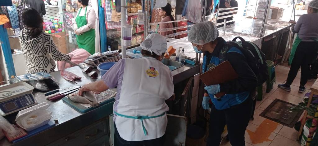 Los inspectores que acudieron al Mercado Huarangal, detectaron irregularidades como el uso de utensilios deteriorados, uso inadecuado de indumentaria, limpieza deficiente, riesgo de contaminación cruzada y hasta excremento de roedor.