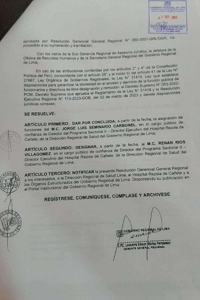 Mientras tanto el director de hospital Rezola, realiza una conferencia de prensa totalmente asombrado, indicando que ‘ni siquiera tuvieron la ética de comunicarle’ de su destitución. Así se maneja el gobierno regional ahora.