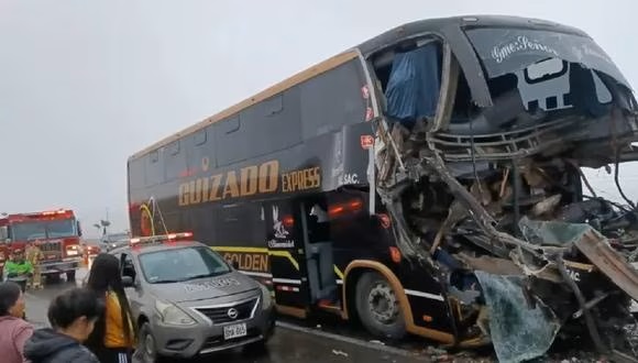 En el kilómetro 45 de la Panamericana Sur, en Punta Negra, tuvo lugar un choque entre un bus interprovincial de la compañía Guizado Express y un volquete con remolque.