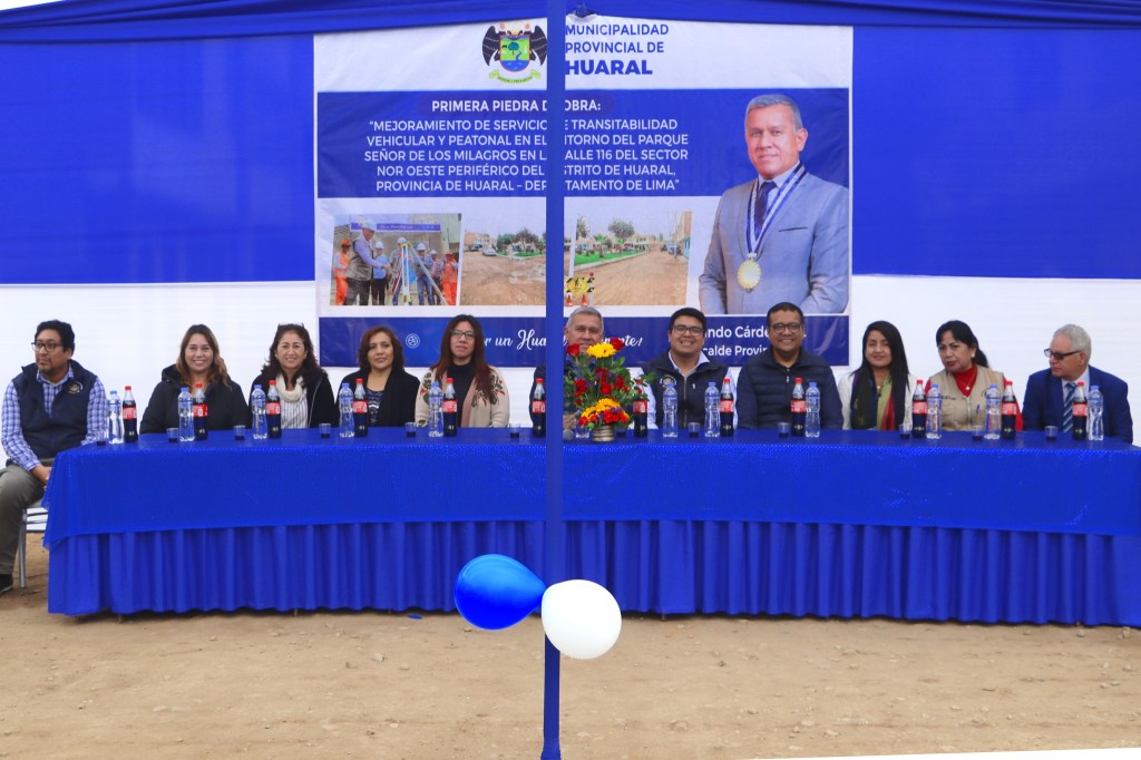 En medio de un colorido ambiente y desbordante de alegría de los vecinos de la Urb. Señor de los Milagros, el alcalde Fernando Cárdenas Sánchez, junto a la población, regidores y funcionarios de la Comuna Huaralina, colocaron la primera piedra para el inicio de la obra “Mejoramiento del Servicio de Transitabilidad Vehicular y Peatonal en el Entorno del Parque Sr. de Los Milagros y Calle 116 del Sector Noroeste Periférico del Distrito de Huaral, Provincia De Huaral – Lima”.