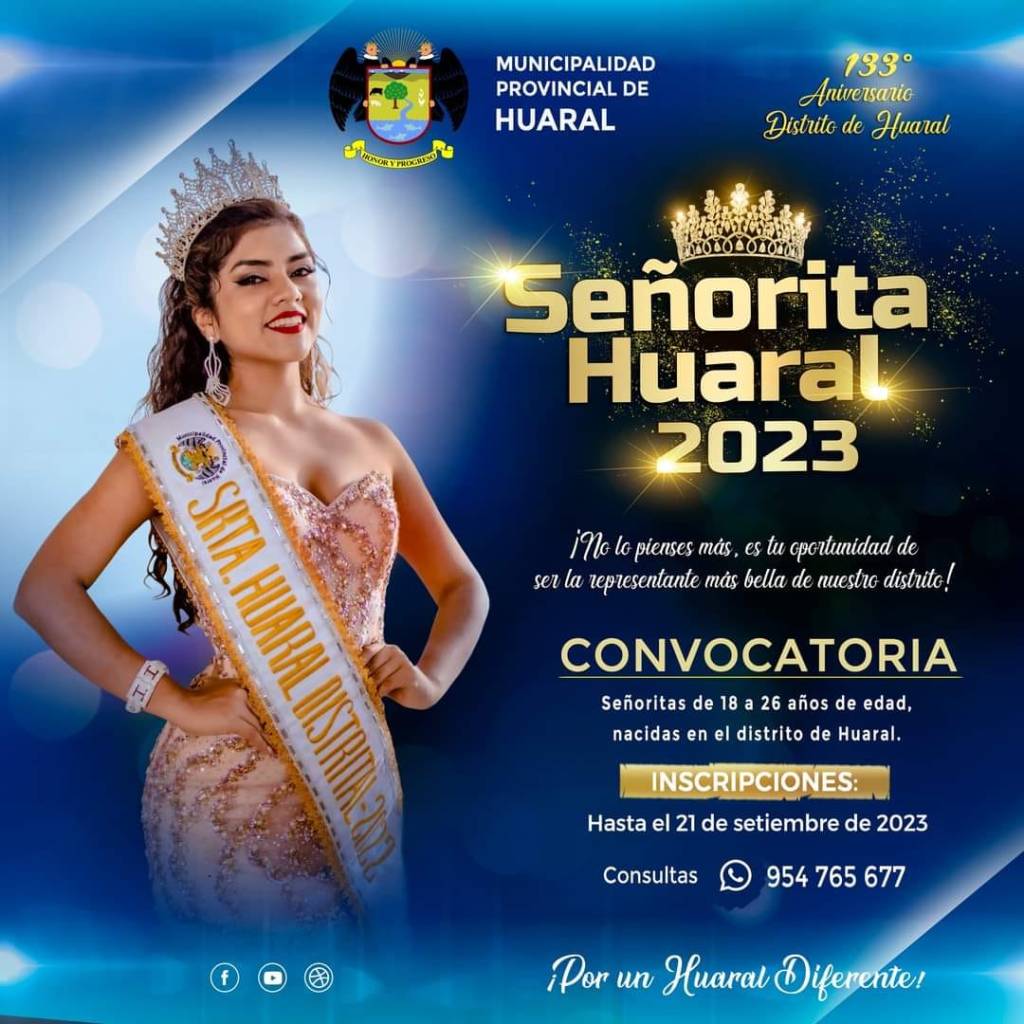 La Municipalidad Provincial de Huaral hace de conocimiento a la comunidad los requisitos que deberán cumplir las señoritas que deseen participar del Certamen «Señorita Huaral Distrital».