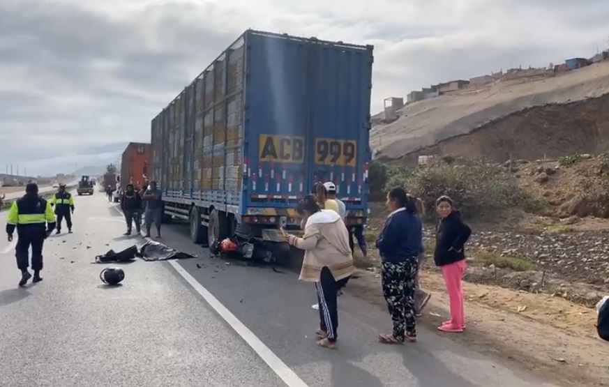 Un lamentable accidente de tránsito se registró la mañana de este miércoles en la vía del Km. 73 de la Panamericana Norte, distrito de Aucallama, provincia de Huaral, donde un motociclista perdió la vida tras chocar su vehículo contra la parte trasera de un camión que transportaba jabas de pollo.