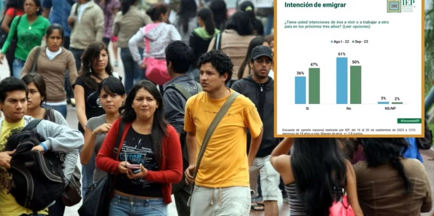 Un importante 47% de jóvenes peruanos tiene intenciones de irse del país en los próximos tres años, ya sea para trabajar o vivir, según el resultado de la última encuesta del Instituto de Estudios Peruanos (IEP) hecha en setiembre a jóvenes de 18 a más. Esta cifra se ha incrementado en 11 puntos en comparación a agosto del año pasado, lo que revela que “el país de las oportunidades” hoy sufre la pérdida de muchos de sus ciudadanos y talentos, dice Laura Amaya, psicóloga social e investigadora del IEP.