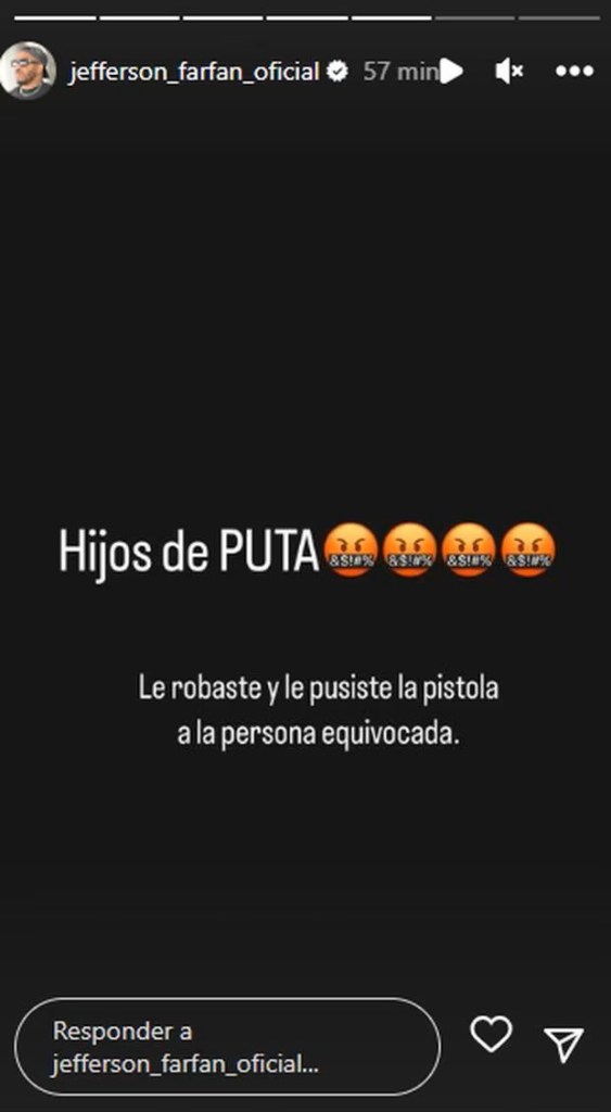 “Hijos de p… Le robaste y le pusiste la pistola a la persona equivocada. Mi hija está sin teléfono, no vayan a escribirle ni responder nada”, escribió.
