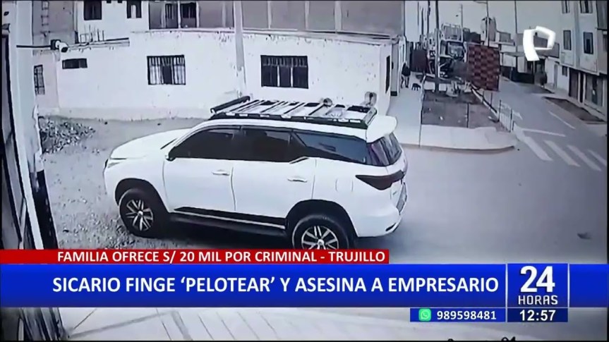 Los hechos ocurrieron en el Centro Poblado El Milagro, ubicado en el distrito de Huanchaco. En imágenes de las cámaras de seguridad se puede apreciar como el asesino del empresario de 35 años, para no levantar sospechas, juega con una pelota a la espera de su víctima.