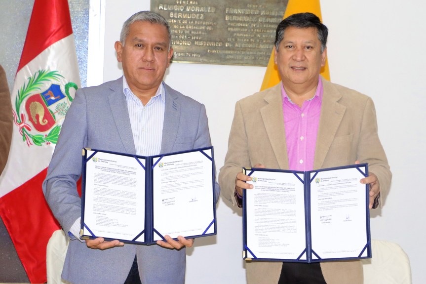 El alcalde provincial Fernando Cárdenas Sánchez y el alcalde distrital de Chancay Juan Álvarez Andrade firmaron esta mañana un convenio de cooperación interinstitucional en favor de recuperar el orden en el transporte.