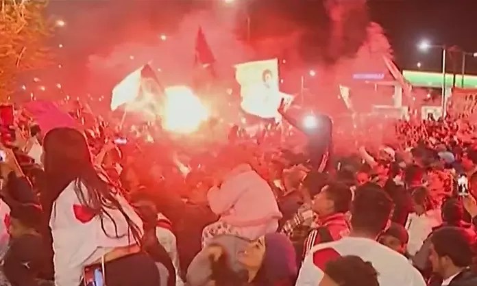 El clímax del banderazo se dio cuando el equipo de todos volvió del reconocimiento del Estadio Monumental de Colo Colo a su hotel de concentración.