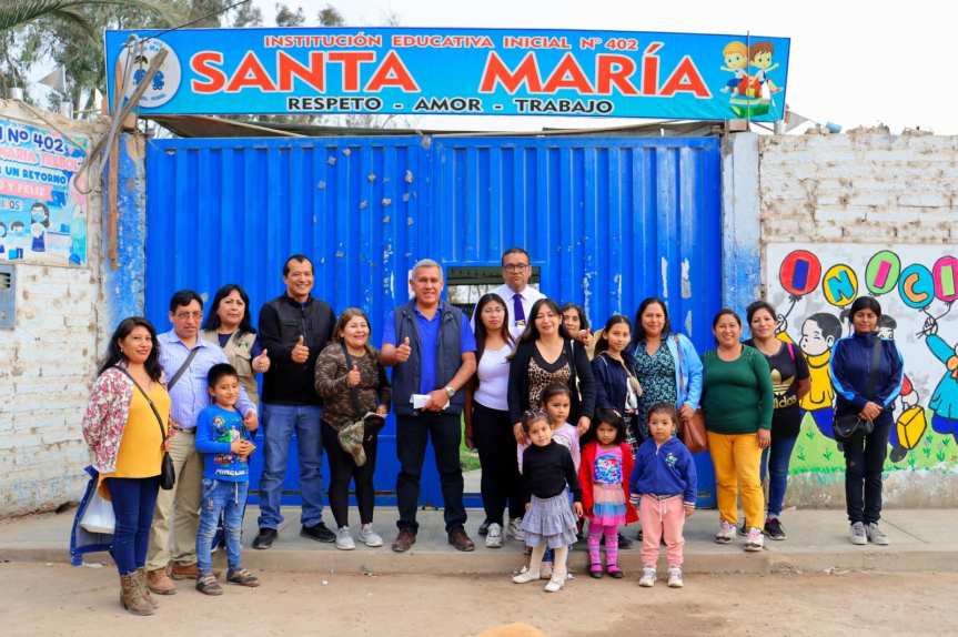 El alcalde provincial, Fernando Cárdenas, junto a sus regidores y a su equipo técnico, acudieron al Colegio Inicial «Santa María» 402, en El Trébol, para anunciar a los docentes y padres de familia que ya está en marcha el proyecto que permitirá la construcción de un nuevo colegio.