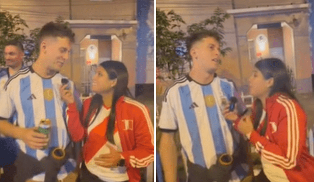 Una creadora de contenido peruana se acercó a un joven originario de Buenos Aires, Argentina, para preguntarle si se pondría la camiseta de la Blanquirroja el día que su país juega. La respuesta del muchacho fue contundente: “Hoy yo vine a alentar a mi selección, mirá la pregunta que me estás haciendo (…) nosotros esas cosas no las hacemos”, enfatizó.