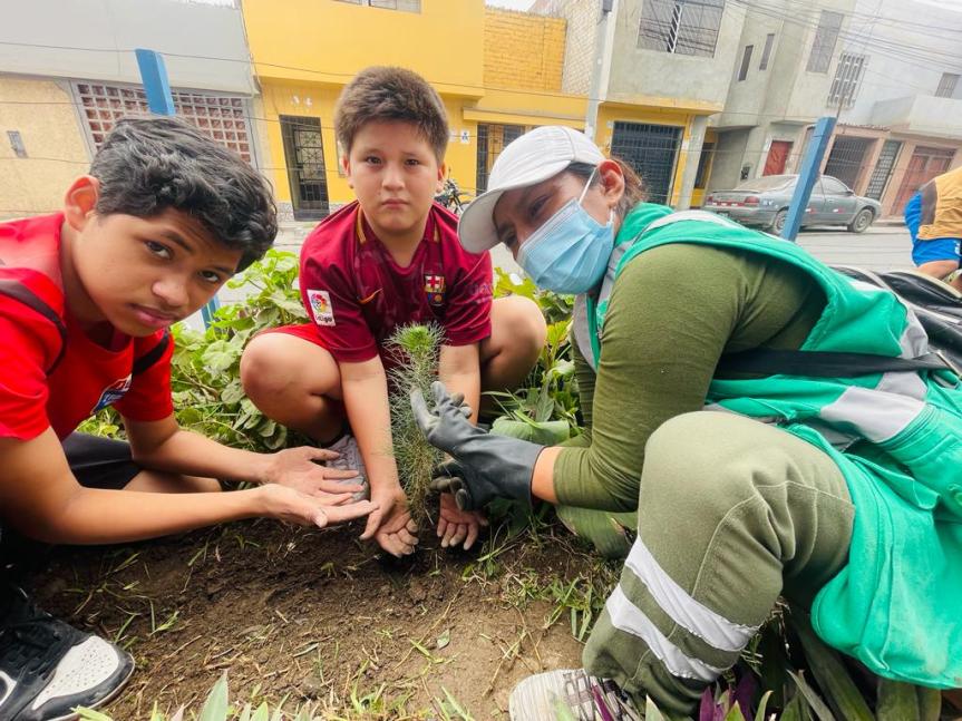 Con la asesoría de personal especializado de la Gerencia de Servicios a la Ciudad y Gestión Ambiental de la Municipalidad, los escolares conocieron en campo los procesos correctos para la limpieza de jardines, así como el sembrado de plantas.