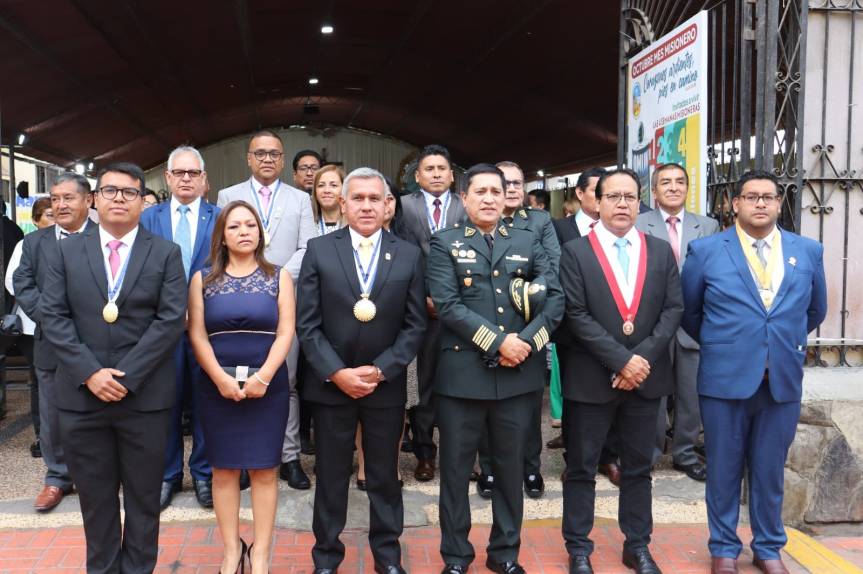 El alcalde provincial Fernando Cárdenas, su señora esposa María Morales, el congresista Roberto Sánchez, regidores y funcionarios, participaron esta mañana de la «Misa Te Deum» por el 133 Aniversario del Distrito de Huaral.