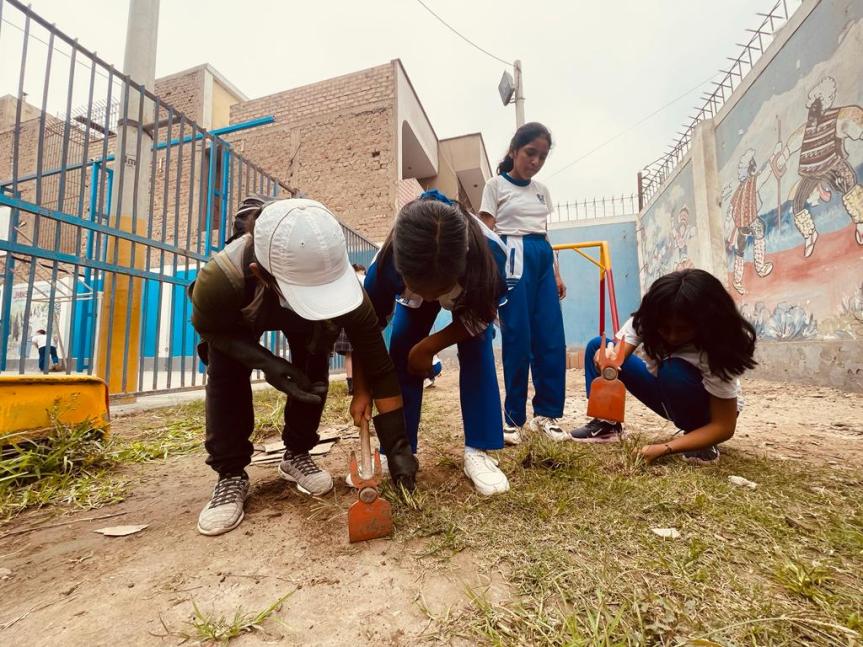 La iniciativa contó con la activa participación de los estudiantes de la mencionada institución, quienes con la guía del equipo de la Gerencia de Servicios a la Ciudad y Gestión Ambiental, conocieron los principios básicos para el mantenimiento de jardines y el sembrado de plantas.