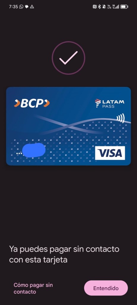 Una vez hecho estos pasos. ¡ya puedes pagar sin contacto en cualquier establecimiento!