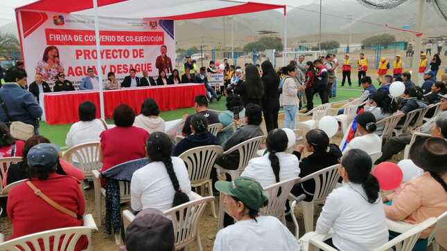 Para financiar y coejecutar la obra: “Mejoramiento de los Servicios de Agua Potable, Alcantarillado y PTAR”, la gobernadora Rosa Vásquez Cuadrado firmó –en acto público- un convenio de cooperación interinstitucional con el alcalde distrital de Aucallama Edwin Valdivia Santiago.