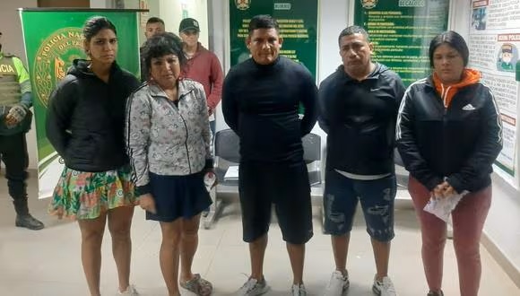 Es así que con apoyo de la comisaría de la zona capturaron en un hotel a Frank Ramírez Romero (44), Nilton César Romero Navarro (44), Rufina Victoria Gonzáles Huarmiyuri (30), Deyanire Kristel Echeandía Arrunategui (27) y Martha Cristina Arrunategui Urriola (50).
