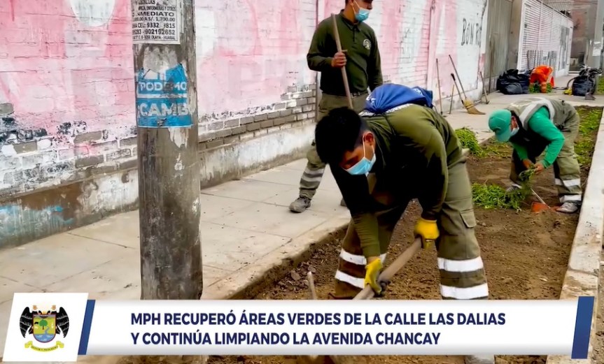 MPH recuperó áreas verdes de la calle las Dalias y continúa limpiando la Av. Chancay