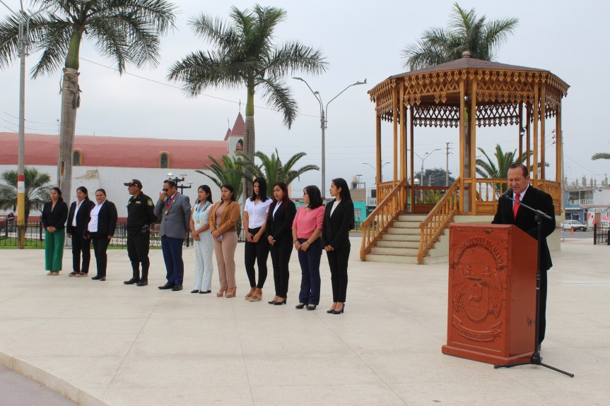 En el Izamiento participan también las subgerentes de Participación Vecinal y Desarrollo Humano, Francis Bernal Valdiviezo, y la Subgerente de Desarrollo Social, Programas Sociales y OMAPED, Melissa Mendoza Ramos.