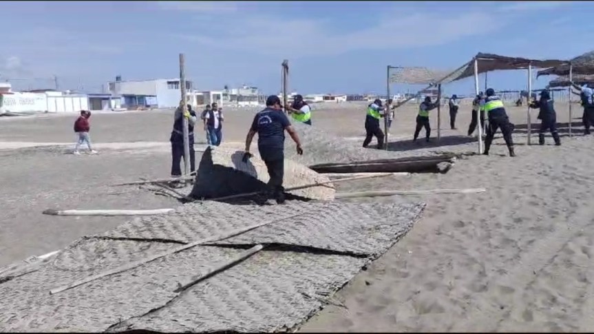 Más de 20 sombrillas, construidas con esteras, bambú, maderas y alambre, fueron retiradas de la playa El Planchón, el distrito de Sama, provincia y región de Tacna, tras los hechos de presunta discriminación en contra de veraneantes, informó la municipalidad del centro Poblado de Boca del Río.