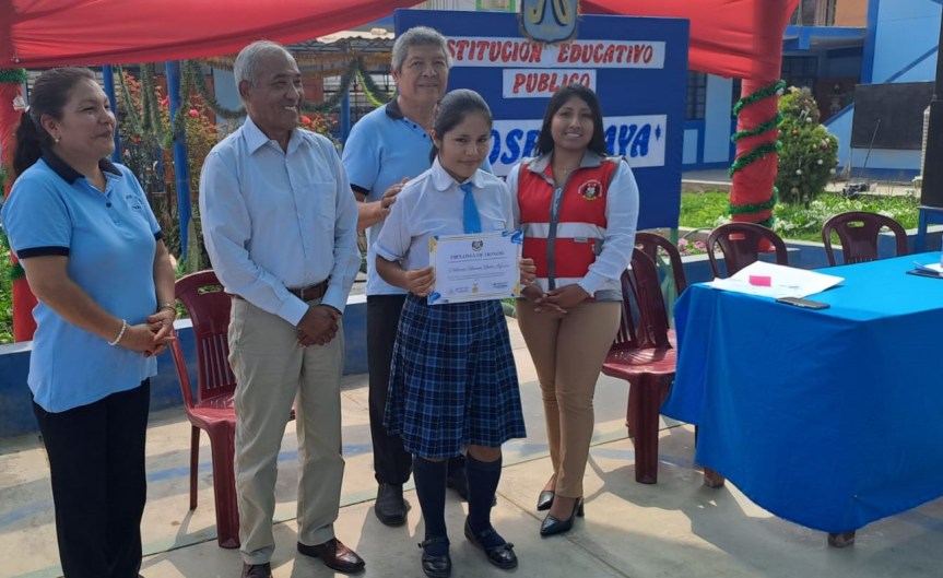 Cabe destacar también la entrega del reconocimiento correspondiente a la alumna Fiorella Valentina Chinchay, quien obtuviera el segundo lugar del Concurso de Declamación de Décimas, Nivel Primaria.