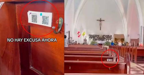 Una iglesia sorprendió a sus fieles al colocar QR de distintas billeteras electrónicas en los espaldares de las bancas con la finalidad que todos puedan dejar su ofrenda sin excusarse de no tener dinero en efectivo.
