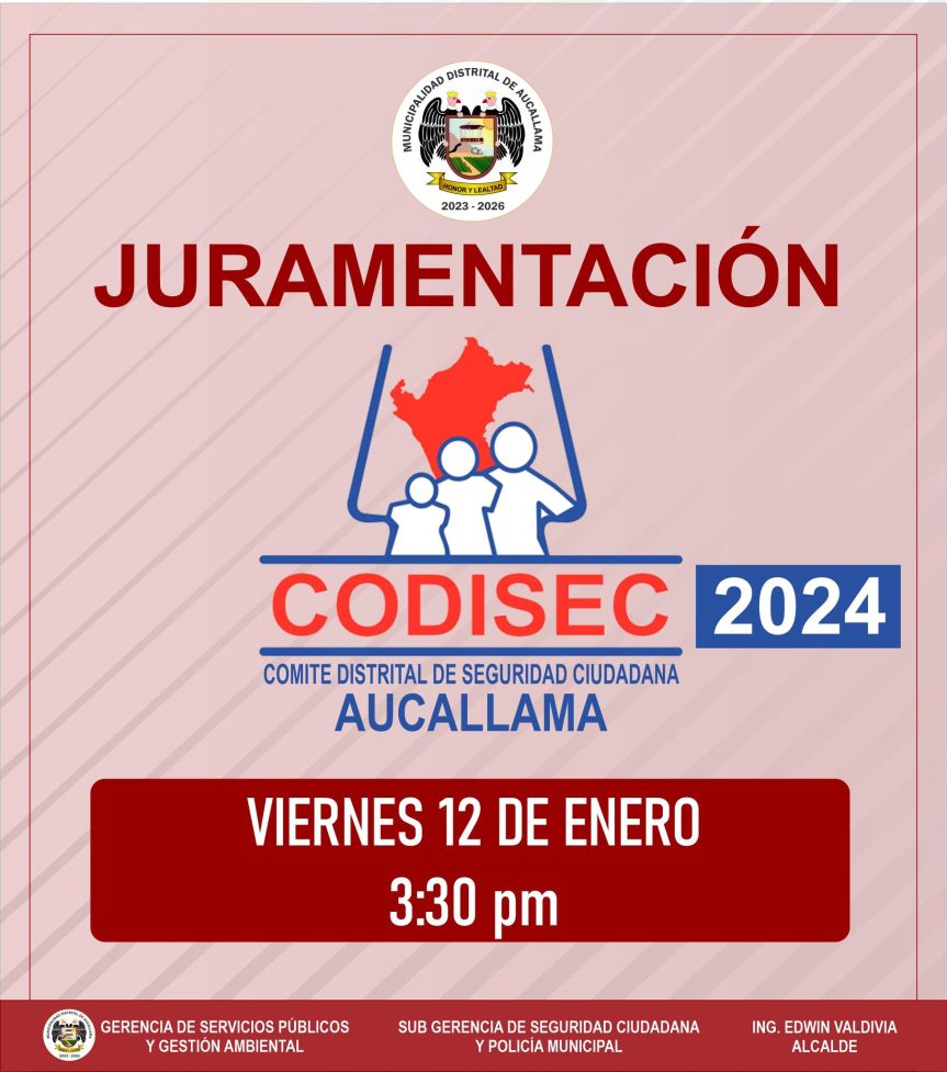 El Ing. Edwin Valdivia Santiago, en su condición de Presidente del Comité Distrital de Seguridad Ciudadana -CODISEC- de Aucallama vienen realizando la convocatoria a la reunión en la que participarán los representantes de las diversas instituciones de nuestro distrito.