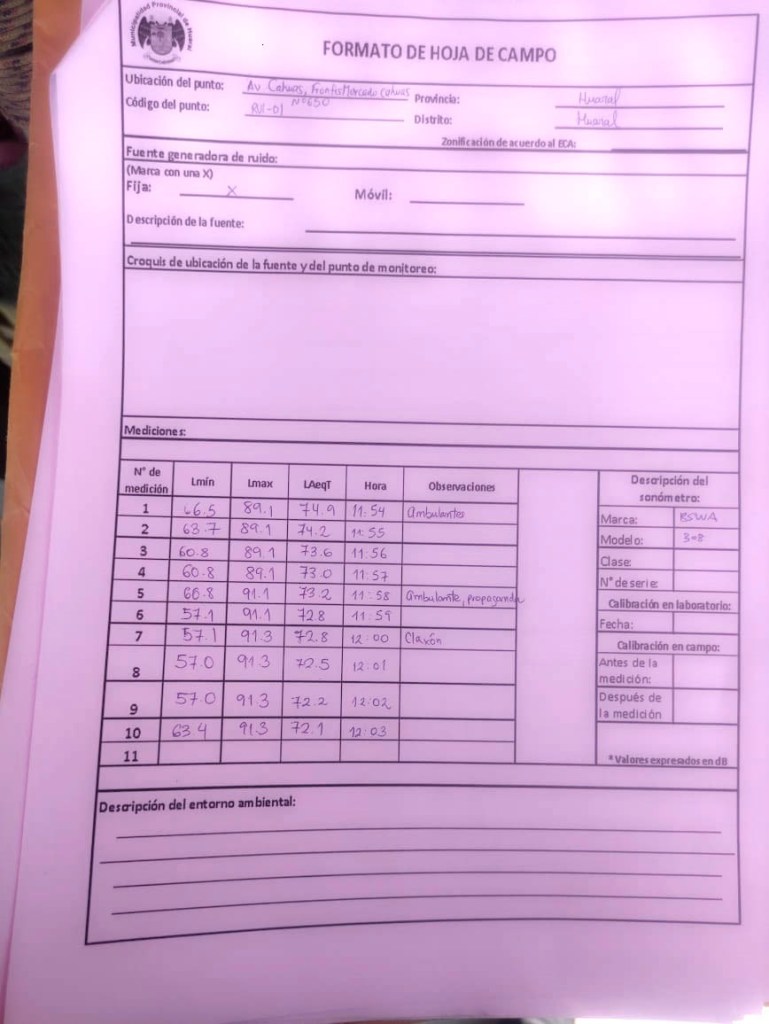 En respuesta al aumento del parque automotor y la creciente actividad comercial en la ciudad, la Gerencia de Fiscalización y Control, junto con la Gerencia de Gestión Ambiental de la Municipalidad Provincial de Huaral, ha llevado a cabo medidas de control de ruido, siendo el objetivo identificar los puntos críticos en la ciudad y desarrollar un plan de acción para la prevención y control de la contaminación sonora.