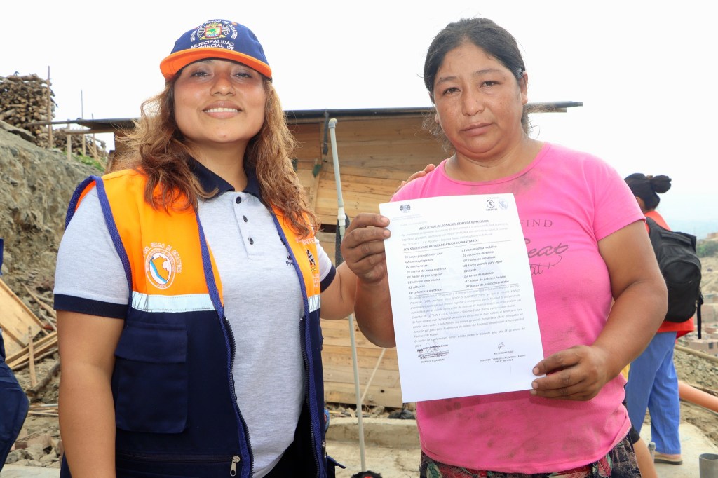 A la zona se hizo presente la subgerenta de gestión de riesgo de desastres, Ing. Cecilia Martino, quien hizo la entrega de una carpa grande, colchones plegables, cocina con mesa metálica, balón de gas, calaminas, colchonetas, sabanas y utensilios de cocina a fin de atender la necesidad de la familia afectada.