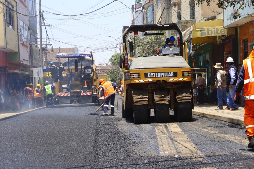 Cabe mencionar que luego de haberse realizado los trabajos de retiro de asfalto deteriorado y el perfilado correspondiente, ya se viene realizando la intervención final con el colocado de la nueva capa asfáltica, siendo los primeros puntos de trabajo las calles Grau, 28 de Julio e Irene Colán.