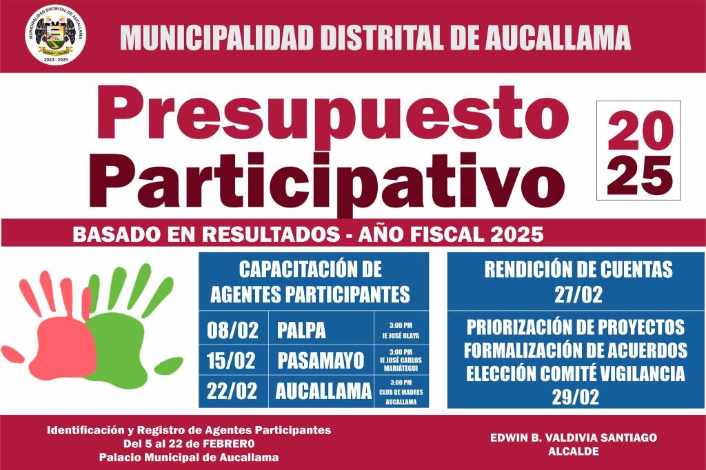 La Municipalidad Distrital de Aucallama inicia el Presupuesto Participativo Basado en Resultados del Año Fiscal 2025.