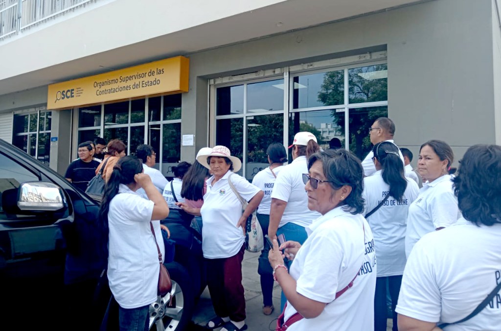 Las madres manifestaban que llegaron buscando respuestas, por qué no prospera el proceso de licitación de productos para el programa del vaso de Leche de Huaral, afectando a más de cuatro mil niños beneficiarios que no son atendidos con el lácteo por observaciones que se presentan en OSCE.
