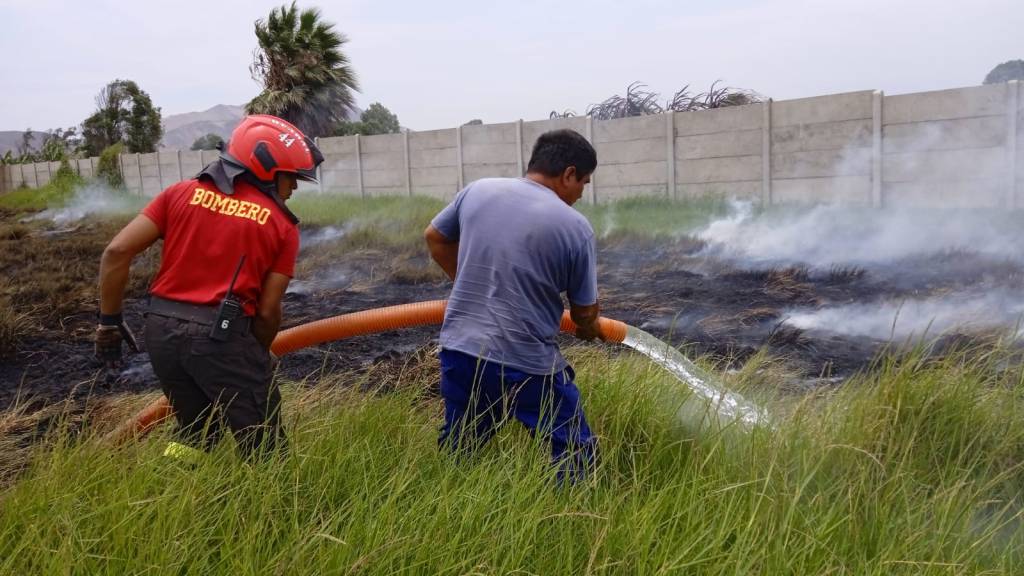 El personal municipal y el cisterna de agua realizaron trabajos, de la mano con los bomberos, para mitigar el incendio de pastizales en Boza.