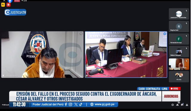 La jueza Nayko Coronado Salazar, presidenta del Tercer Juzgado Penal Nacional Colegiado, leyó el adelanto del fallo en el caso «La Centralita» que se siguió al exgobernador regional de Áncash, César Álvarez Águilar por delitos de corrupción de funcionarios, lavado de activos y asociación ilícita, entre los años 2009 al 2014, tras más de 12 años de investigación y juicio público.