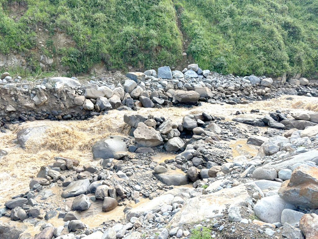 El equipo técnico liderado por la Ing. Cecilia Martino, de la Subgerencia de Gestión del Riesgo de Desastres, se desplazó de manera inmediata hacia la zona afectada para evaluar los daños ocasionados por el desborde del río Añasmayo, que dejó al puente de La Perla obstruido por piedras y sedimentos.