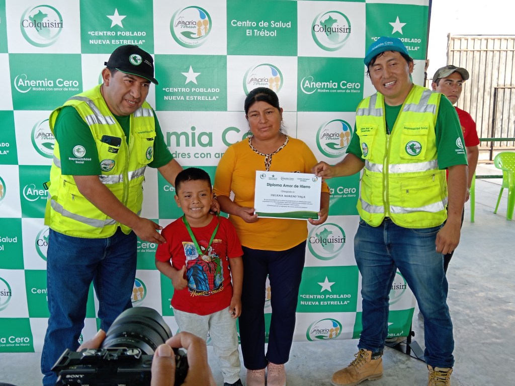El Ing Juan Carlos Paredes de Colquisiri dijo sentirse muy contento de haber alcanzado logros positivos en la lucha contra la anemia en Nueva Estrella. La Dra. Elizabeth Sánchez destacó en tener el respaldo de Colquisiri, que brindó el apoyo con los viáticos que son suplementos envase a hierro de gran aporte nutricional para los niños beneficiarios.