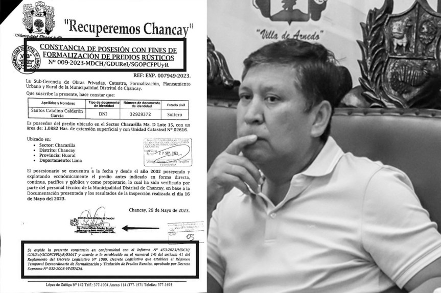 En un sorprendente episodio que revelaría presuntos pagos de coimas a funcionarios de la Municipalidad Distrital de Chancay se puso al descubierto una serie de prácticas poco éticas relacionadas con la emisión de una Constancia de Posesión para la Formalización de Predios Rústicos a Santos Catalino Calderón García, bajo el amparo de una ley ya derogada.