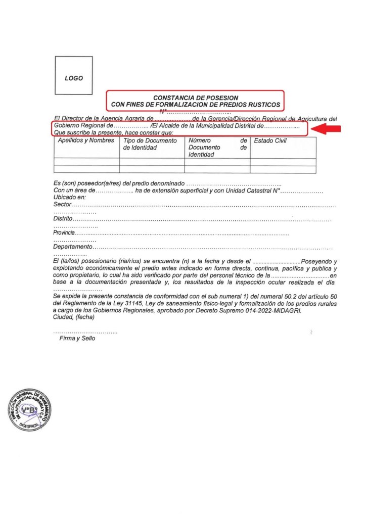 Según las disposiciones ministeriales, solo el Director Regional de Agricultura en el caso de los gobiernos regionales y el alcalde en el caso de las municipalidades distritales, son los únicos facultados para suscribir dichos certificados, acto que no sucedió en el Certificado de Posesión en cuestión, el cual fue firmado por el Ing. Franco Sánchez Bazalar, Sub Gerente de Obras Privadas de la municipalidad de Chancay, planteando serias dudas sobre el cumplimiento de las normas legales para tal fin.