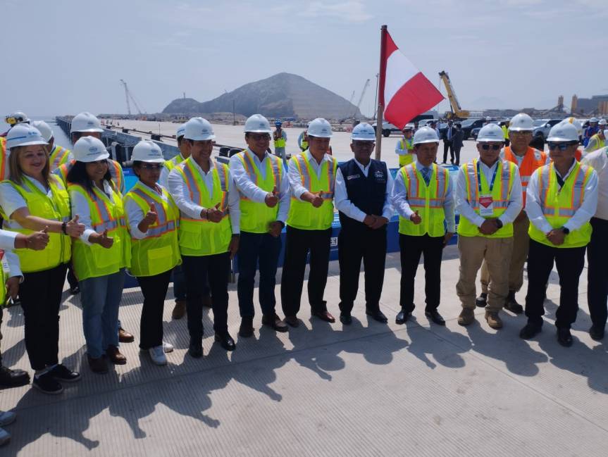 La titular del MIMP recorrió junto a los integrantes de la comisión multisectorial, el Proyecto Terminal Portuario Multipropósito de Chancay, cuyo objetivo es promover la inversión y el desarrollo en infraestructura social. La comitiva visitó la zona operativa portuaria conformada por el muelle granelero y el muelle de contenedores.