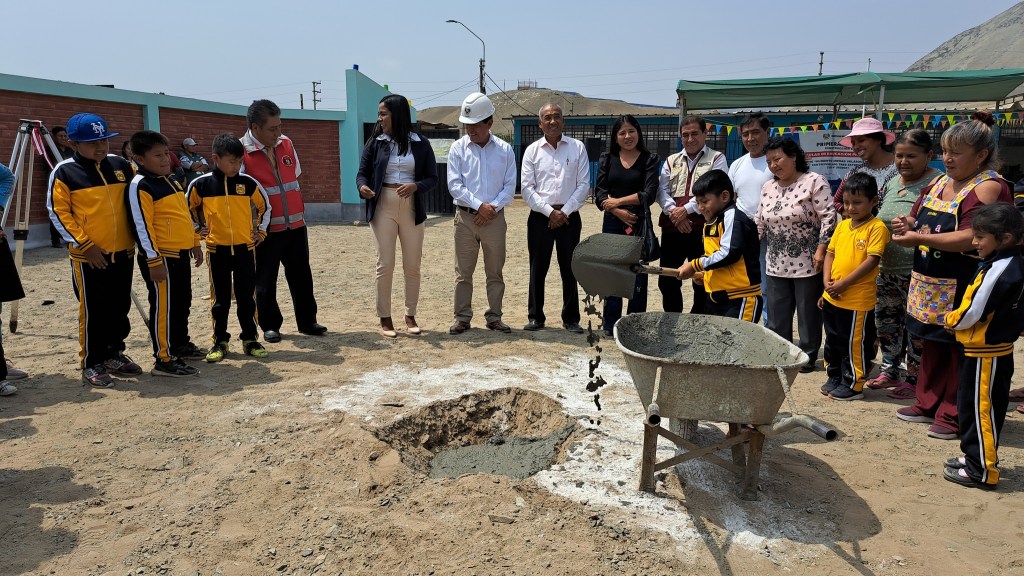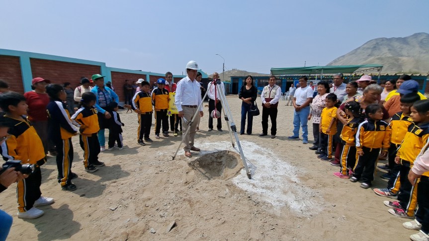 La comunidad educativa de la institución «Humberto Arenas Velásquez», en el asentamiento humano «Tres Estrellas, recibió con mucho entusiasmo al alcalde Edwin Valdivia Santiago para participar en la ceremonia de Colocación de la Primera Piedra en la construcción de aulas de educación primaria.
