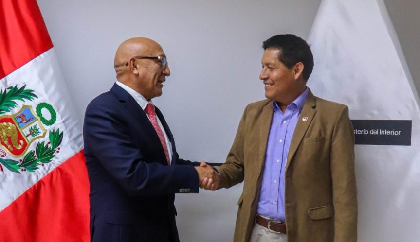 El Ing. Edwin Valdivia sostuvo una reunión de trabajo Viceministro de Seguridad Pública, Julio Díaz Zulueta, quien estuvo acompañado de representante del Programa de Incentivos, Cmte. Hernán Susunaga, y del responsable de Proyectos de Inversión, Ing. Juan Carlos Cutipa.