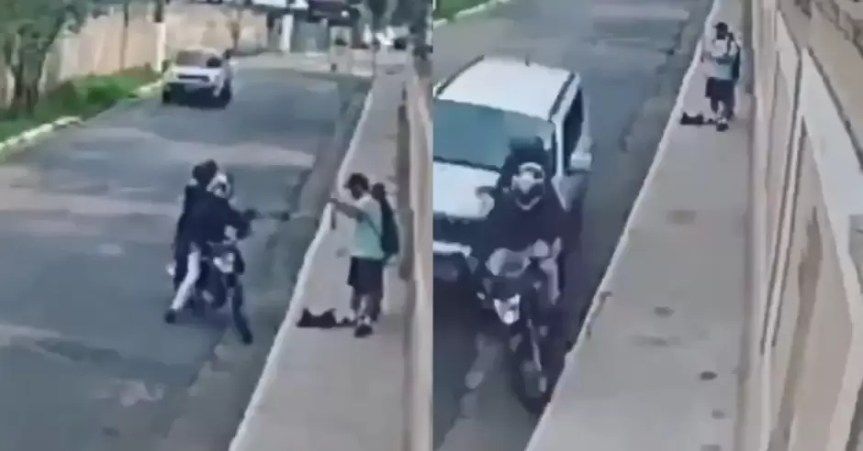 De esta forma, mientras una pareja era amenazada por dos ladrones a bordo de una motocicleta, un vehículo ajeno a la escena emergió como un inesperado salvador al atropellar a los delincuentes, frustrando su escape y poniendo fin al asalto.