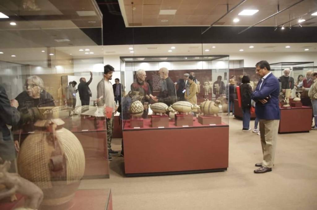 La ministra de Cultura, Leslie Urteaga Peña, inauguró la exposición temporal “Chancay de a mil”, muestra que reúne una selección de 225 piezas de cerámica arqueológica de la colección del reconocido escultor peruano Benito Rosas Castilla, que se muestran por primera vez a la ciudadanía en la sala Nasca del Ministerio de Cultura (Av. Javier Prado Este 2546, San Borja).