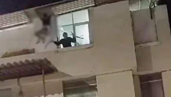 Tras la llegada del personal policial de la sección de Búsqueda, encontraron a la mujer sujetada en la estructura metálica de una ventana del tercer piso e intentando lanzarse al vacío.
